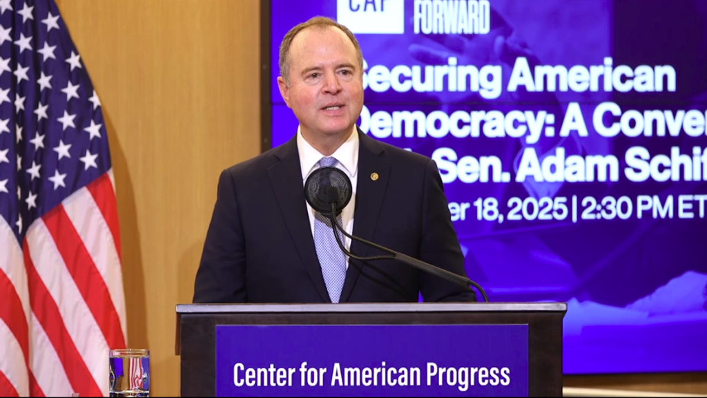 During his speech, Schiff also touched on the deployment of federal forces in American cities, politically motivated investigations and prosecutions, and intimidation tactics on independent media and civic institutions. Schiff also offered insight into how he’s protecting checks and balances and pushing for accountability reforms to challenge the administration’s increasingly authoritarian actions.